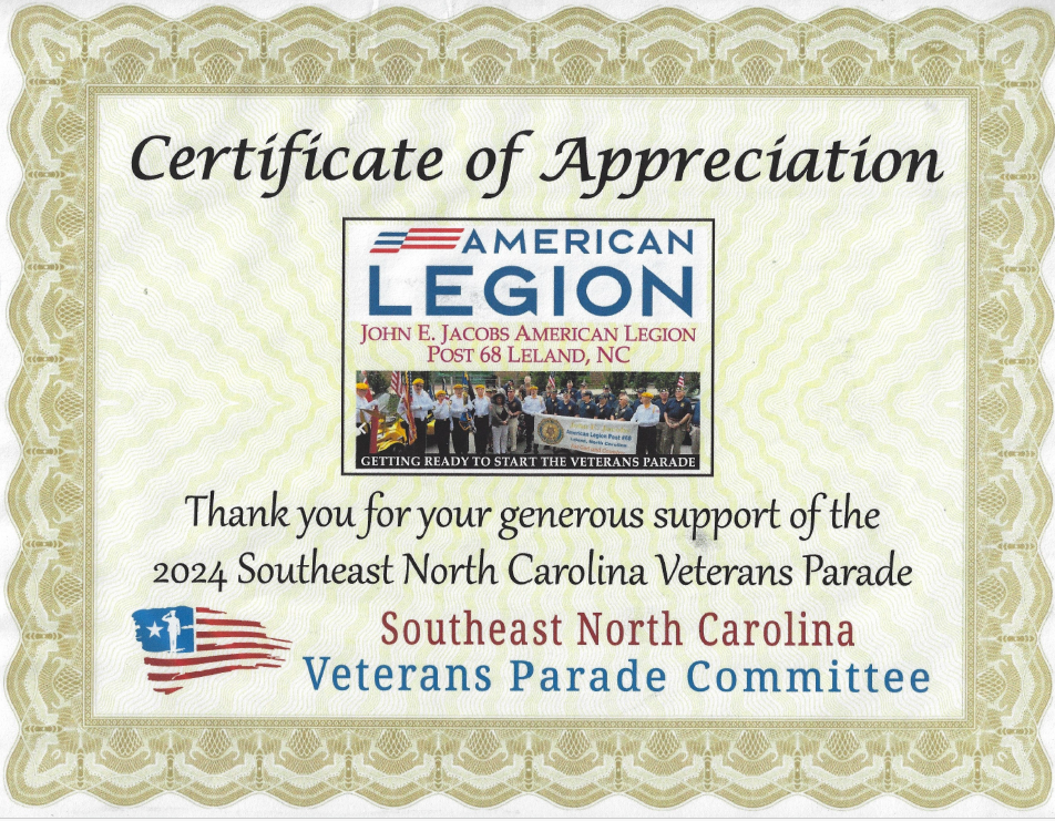 Presented to Post 68 January 2018 from Melissa Monroe, Deputy Director of Brunswick County Board of Elections for inviting her to speak to our Post members |